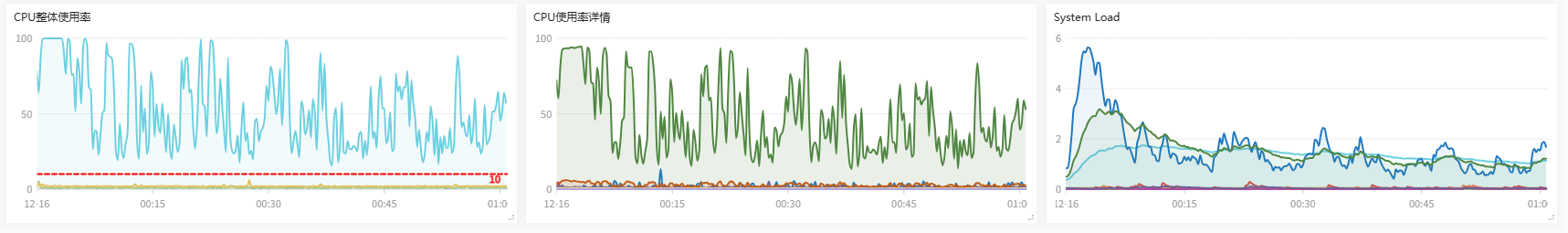 到0点后数据明显增长了一倍之多CPU也飙升很快,我感觉好像就只有这一台机器在负责处理其他机器都不起作用