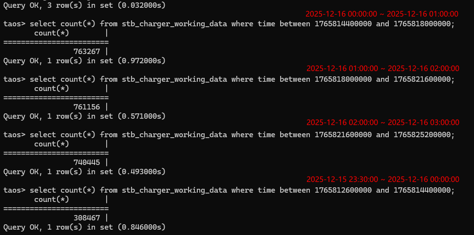 我们这边主要是做充电桩业务,晚上0点有大量家用充电桩发起充电,这时会大量写入工作数据,如下图