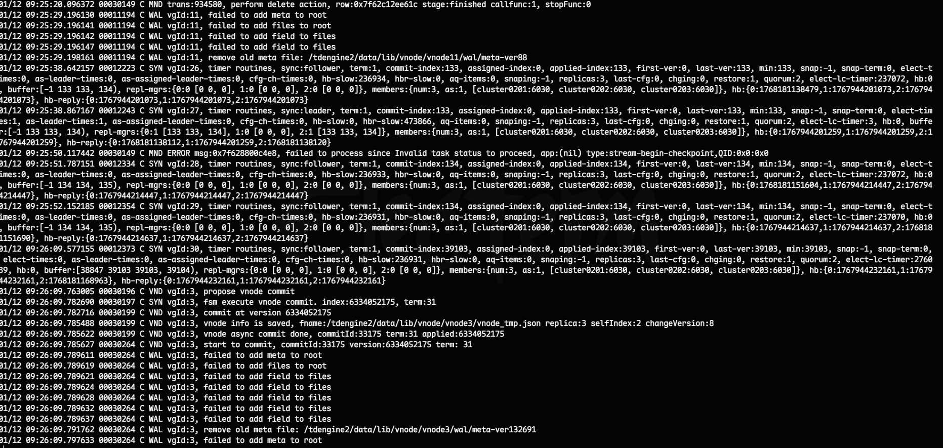 原来一直没有或者少这样的日志,今天一看全是 一直报。 这个是不是不影响数据库存储和查询?写入WAL 失败,担心 内存溢出,重启后数据丢失。