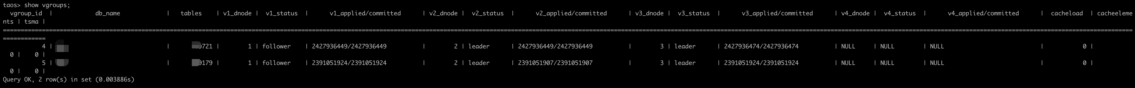 原本是单节点,想改造成集群模式。由于数据量非常大,taosdump 效率很低,所以通过创建快照来新建节点,然后主节点再加入这两个新建的节点(从节点加入集群之前已经删除了 /var/lib/taos/mnode 文件夹,删除 /var/lib/taos/dnode/dnode.json 文件),这样就可以节省数据同步的时间,但是 vgroup 出现了两个 leader,这个是什么原因?
