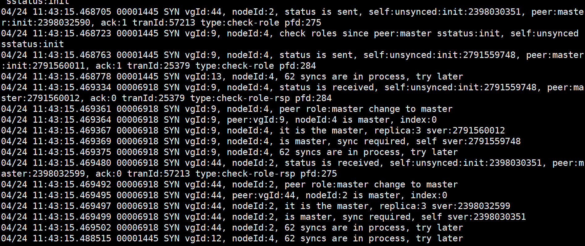 原本数据误删,导致元数据损坏。但是服务器有做快照,用快照恢复后,所有节点都恢复正常。