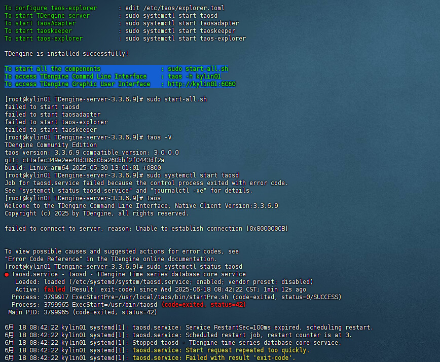 安装成功后启动失败,查看官方支持平台好像只支持企业版,这个企业版是银河麒麟的企业版还是taos的企业版呀?现在arm64内核的这样,那x86内核的也是必须这样吗?