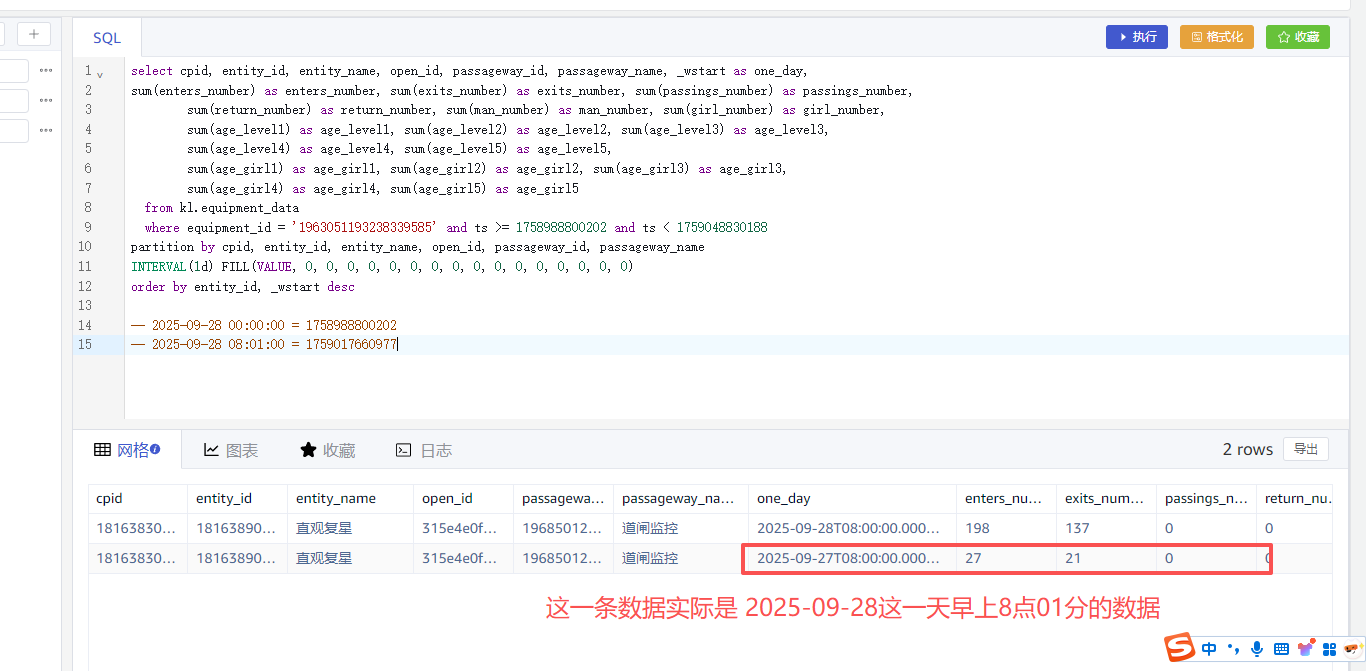 【问题复现路径/shan】就是查询这个sql出现了两条, 然后查询的时间之前3.5.0是 00:00:00 为什么现在是08:00:00