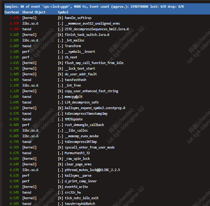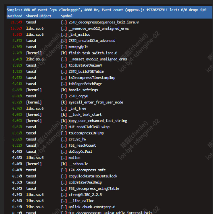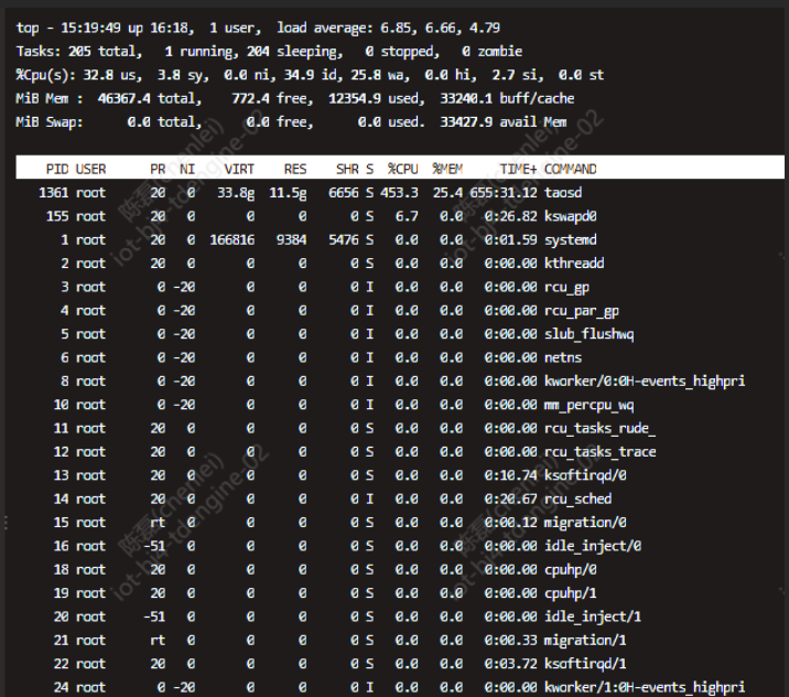 对于CPU 100%的现象,在日志中没有对应记录,需要问题发生时,使用 top -H 确认占用负载最高的线程,并结合 perf 分析哪些函数负载最高。