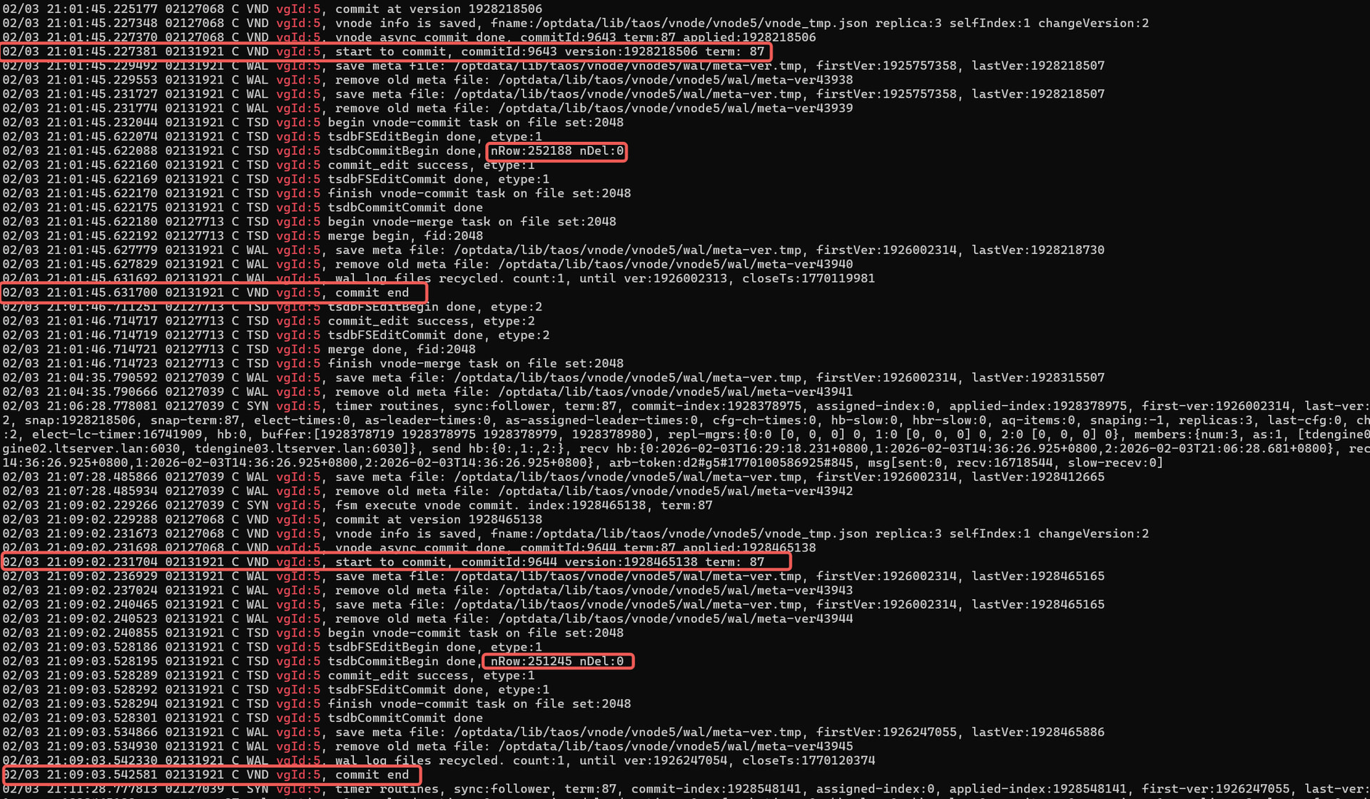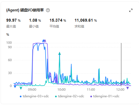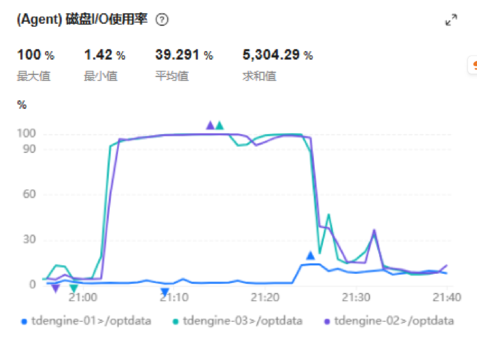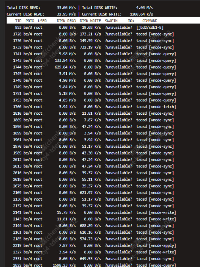 除处理落盘外,日志并没有明显异常,查询和写入都没有别阻塞的日志;且节点2 在21:23:27重启后,磁盘负载并没有下降,说明需要写入的数据量并没有变化。