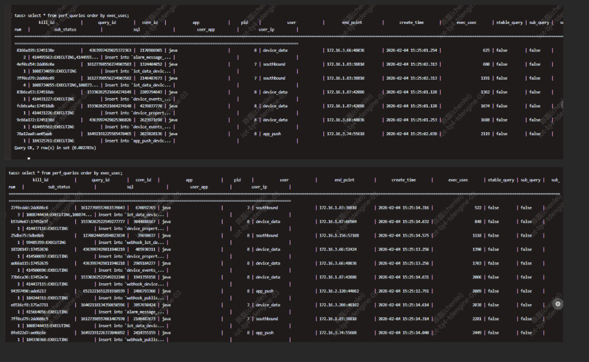 show queries 在cpu突发时,必现慢查询 不管是插入还是查询 都存在 但平时运行平稳 不会出现慢查询
