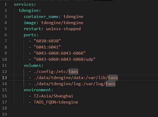 3、整个过程中docker服务运行,运行tdengine容器的yaml文件内容如下: