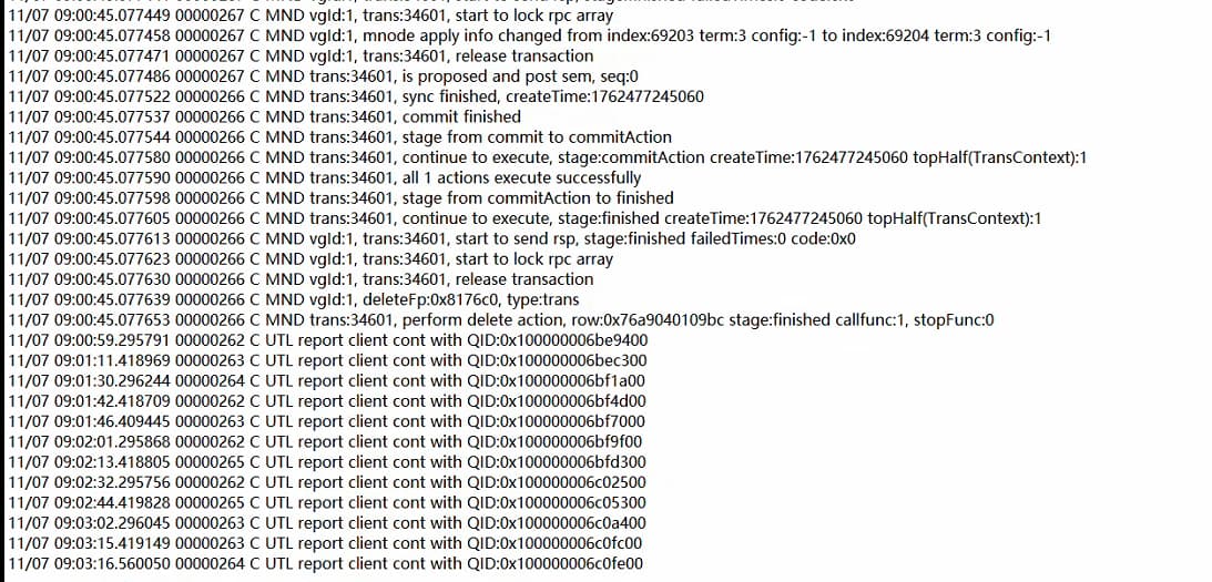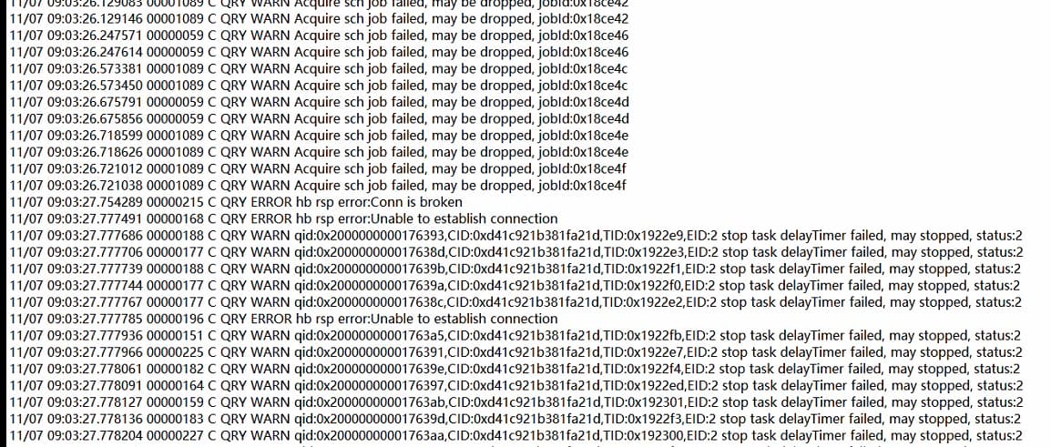 查看taoslog0.1在连接异常的时间节点的日志如下: