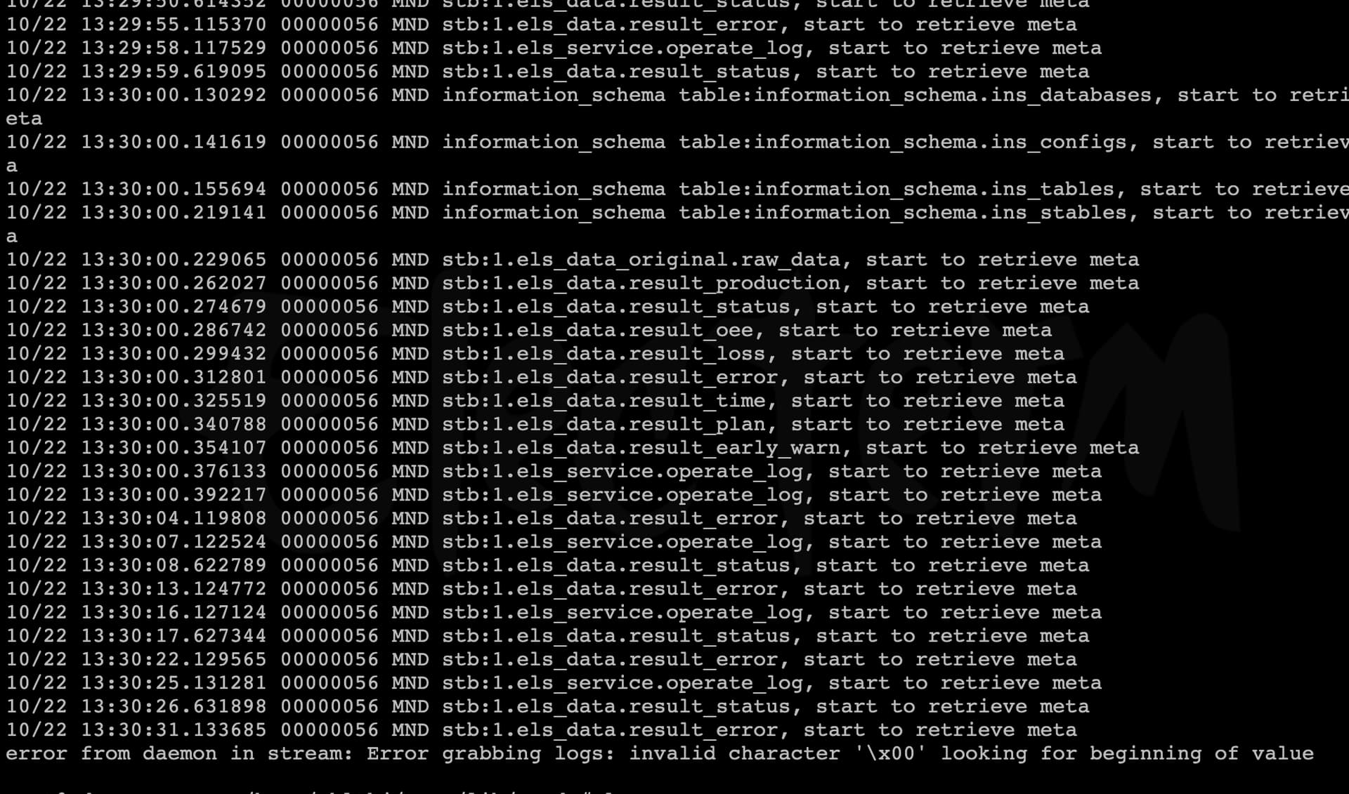 error from daemon in stream: Error grabbing logs: invalid character ‘\x00’ looking for beginning of value