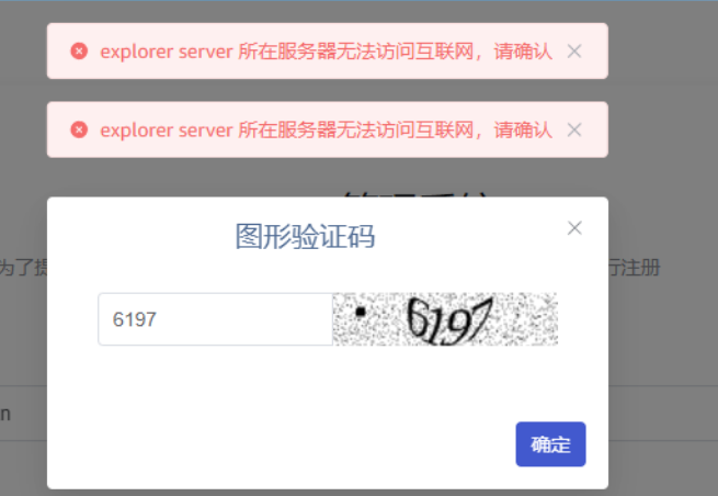docker部署一切正常,控制台访问正常。注册时,输入验证码提示”explorer server 所在服务器无法访问互联网“,但是服务器肯定是联网的,还能访问百度或者TDengine的官网