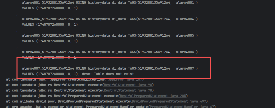 在多线程高密度大批量写入的时候存在偶尔写入失败的情况,提示desc: Table does not exist,desc: Table does not exist,理论使用了USING的情况下会自动创建子表