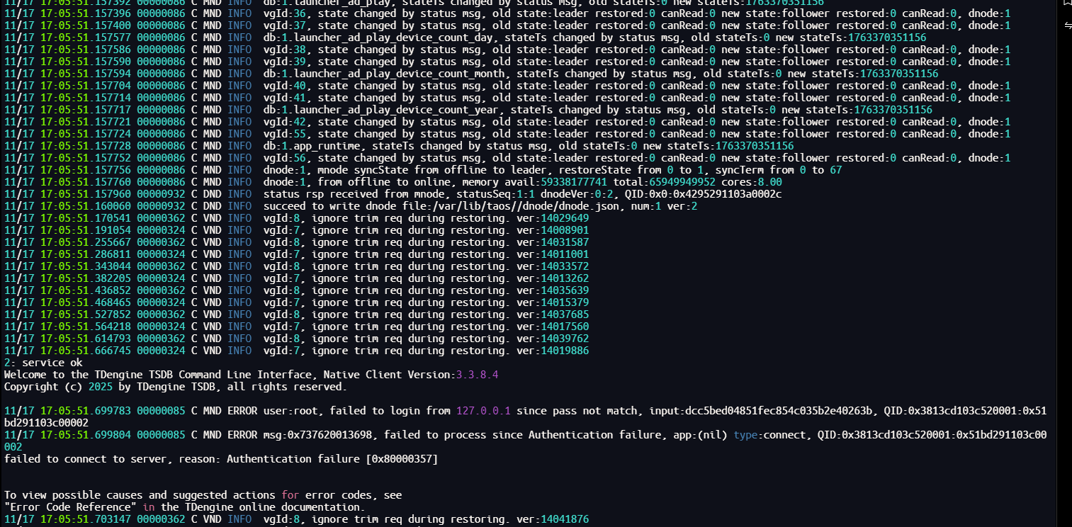 3.3.2.0–>3.3.7.0 因那时不知道有TAOS_ROOT_PASSWORD参数启动失败,所以回退到了3.3.6.13。固最终是3.3.2.0–>3.3.6.13可以正常升级。