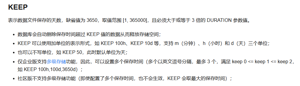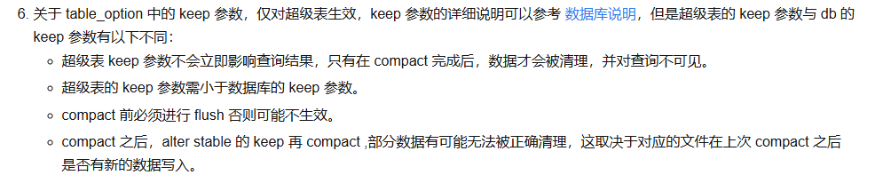 超级表中关于KEEP参数的描述