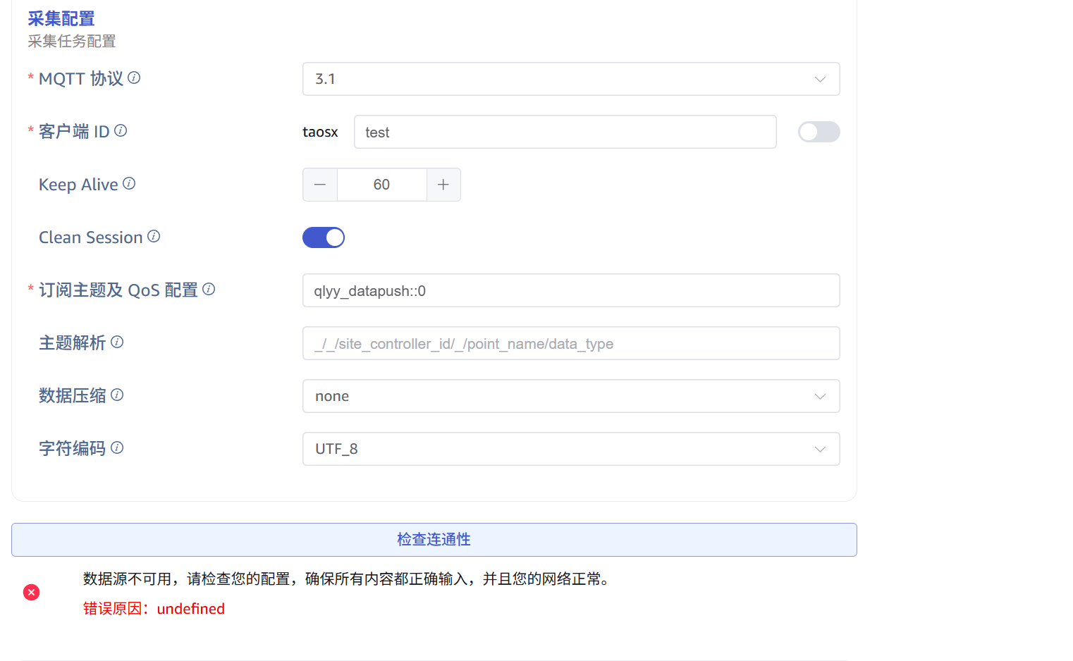 电脑联外网没问题,检查连通性提示数据源不可用,请检查您的配置,确保所有内容都正确输入,并且您的网络正常。错误原因:undefined,但是错误原因是undefined,是哪里错误呢
