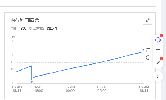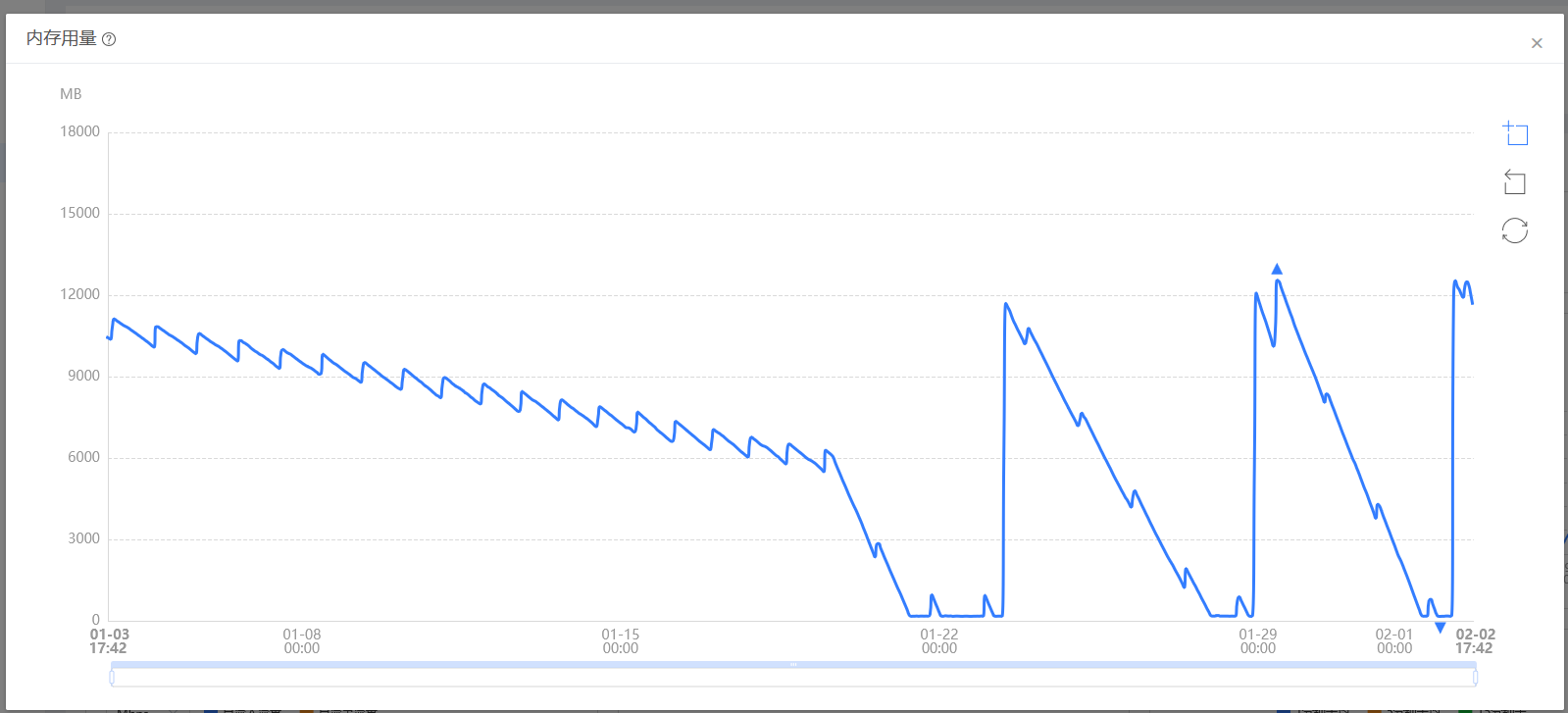 这是之前的内存变化,我观察内存余量走势如下图,产品是没有释放内存的机制吗,内存用量会随时间越来越大?需要定期重启?