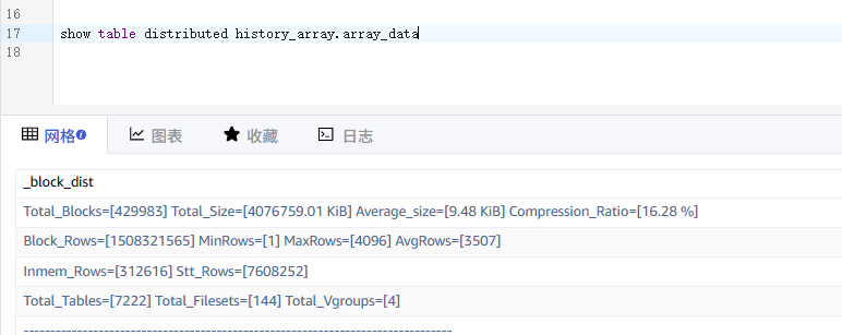 另show distributed是从字节长度算的存储,与磁盘占用是有一定的差异的,此点请注意。