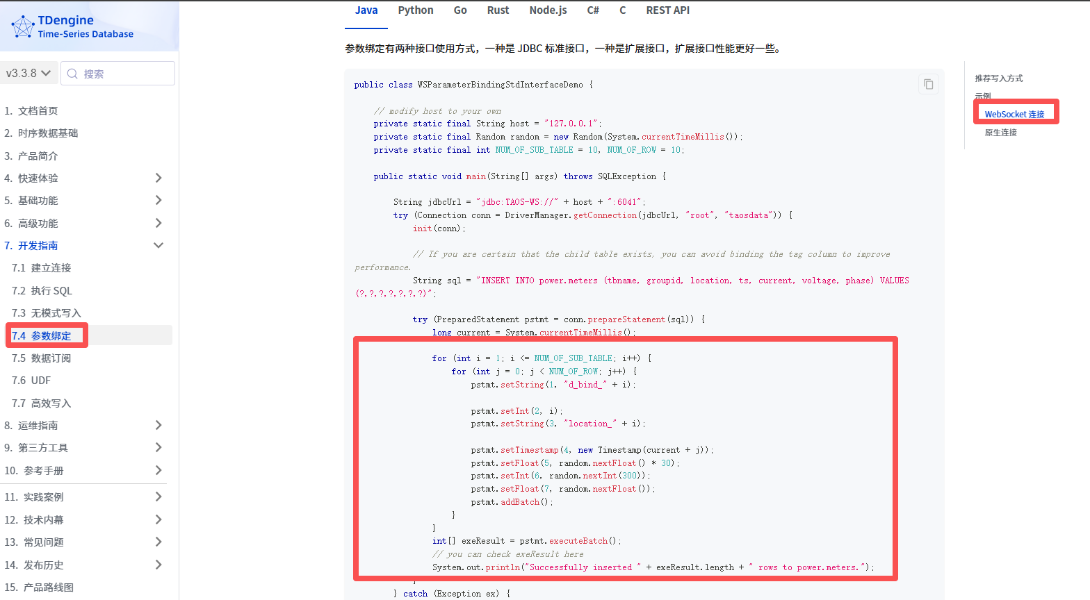请见官网文档:参数绑定写入 | TDengine 文档 | 涛思数据