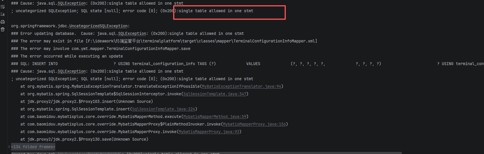 在一条语句中向多个表以自动建表的方式插入记录时提示single table allowed in one stmt