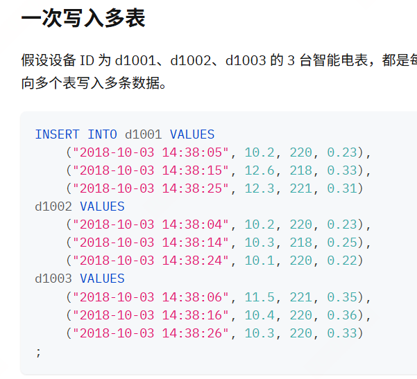 这是我这边业务入库的sql 我这边是插入超级表 然后指定普通表名的方式形成一个sql进行的入库 所以我这种写法应该符合第一条 尽可能的单次写入多种数据量 而且是入同一个超级表 关于第三点 我这种属于每批次只向同一张表写入吧有什么问题吗?