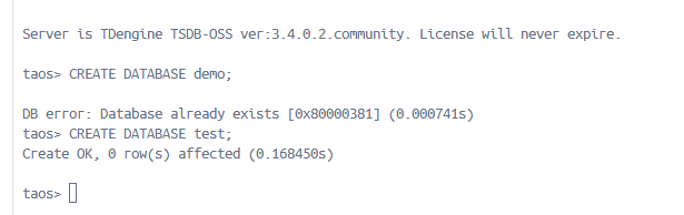 本地demo测试接入taos数据库,执行sql语句没有反应。