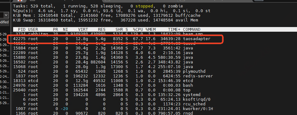 【遇到的问题:问题现象及影响】taosadpter占据的内存有接近6个g 但是重启之后占据的内存就比较少了 随着时间使用的推移 内存的占有量貌似在增长 这块是否有可以排查的手段 这种现象是否正常呢