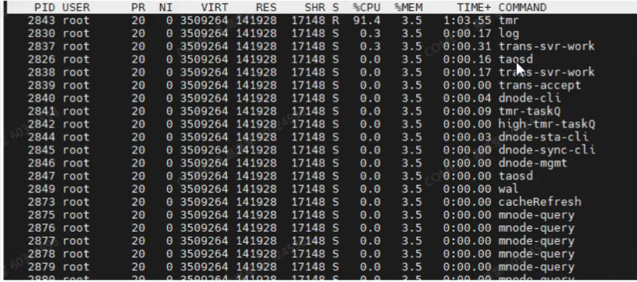 taosd及客户端程序在开机程序启动时,有时占用CPU较高(时长大概30s)。参见下前3张图分别为taosd,taosadapter,我们使用taos客户端的应用程序的top -H的截图;最后1张图显示3个程序同时出现占用CPU较高的现象。