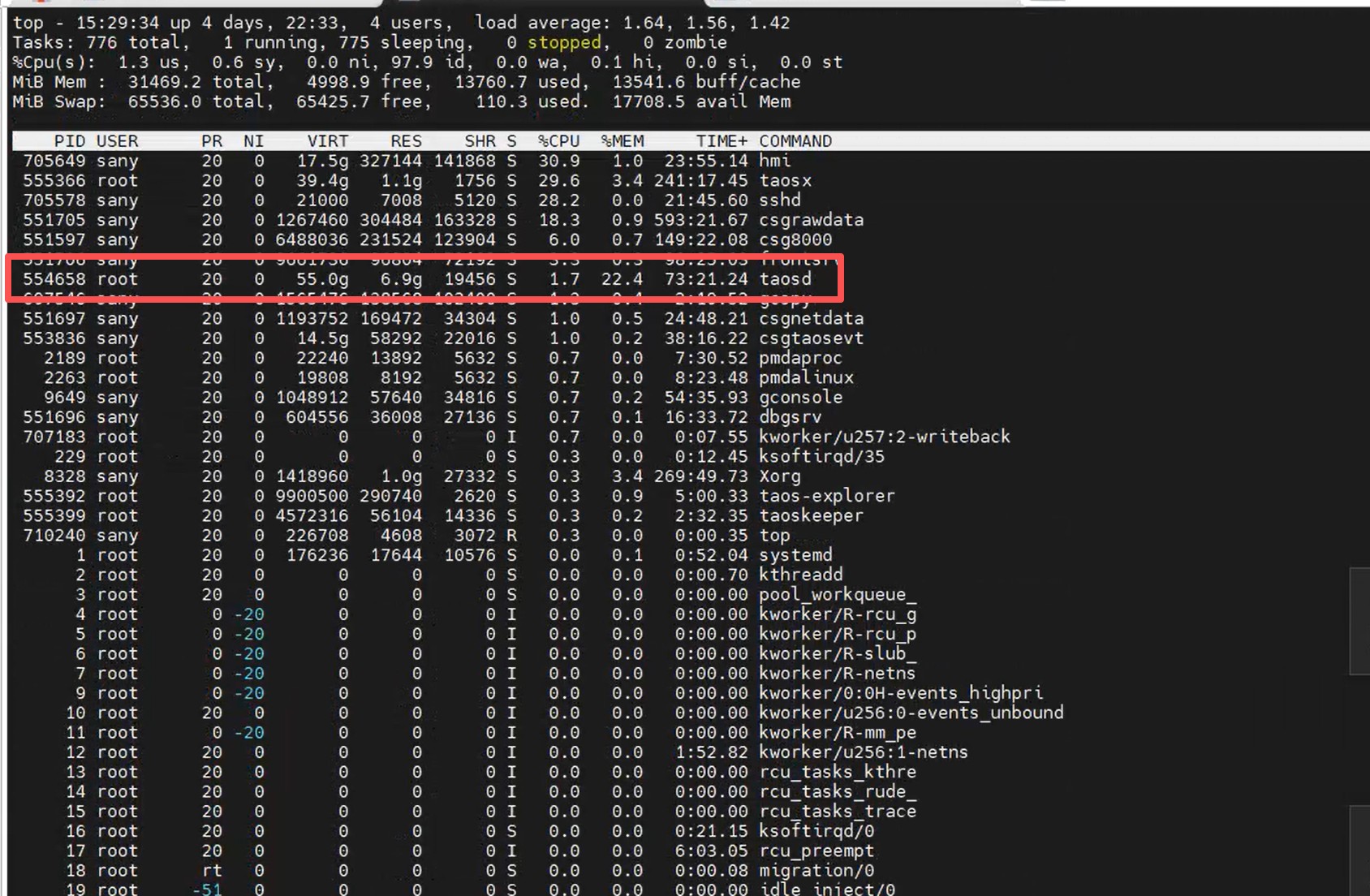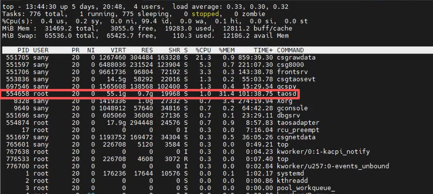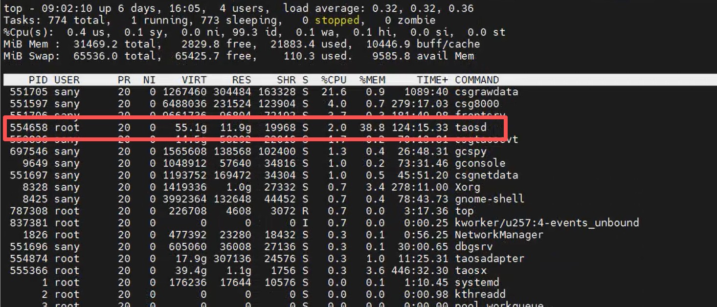 持续拷机6天后,taosd占用内存一直在上涨