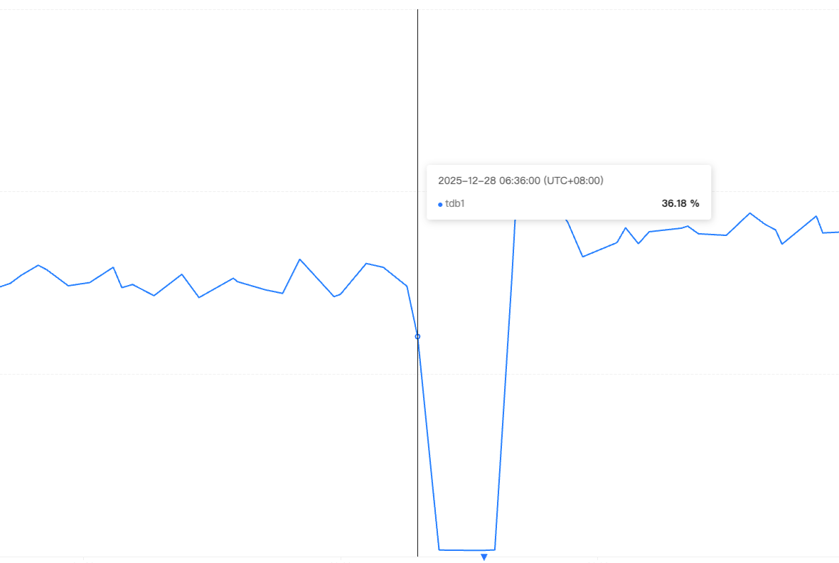 从这个CPU曲线图上看好像是taosd挂掉了 但是当时我看服务器进程还是在的 重启后就正常可