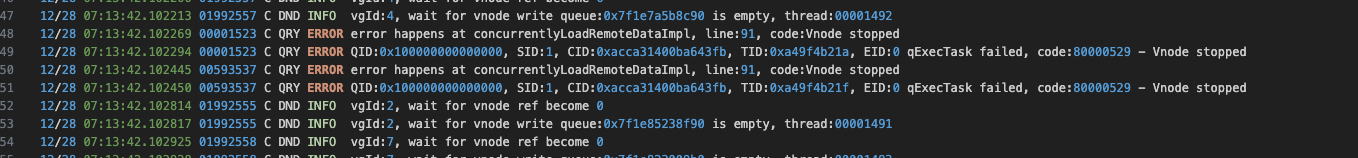 12/28 06:23:32.087825 00001520 C UTL FATAL colDataKeepFirstNRows: newLen:-1 old:545166是交叉每隔一段时间打印一次 图片中的报错是已经不可用了