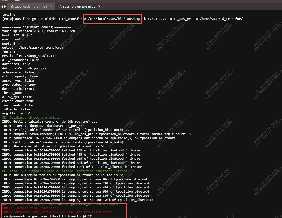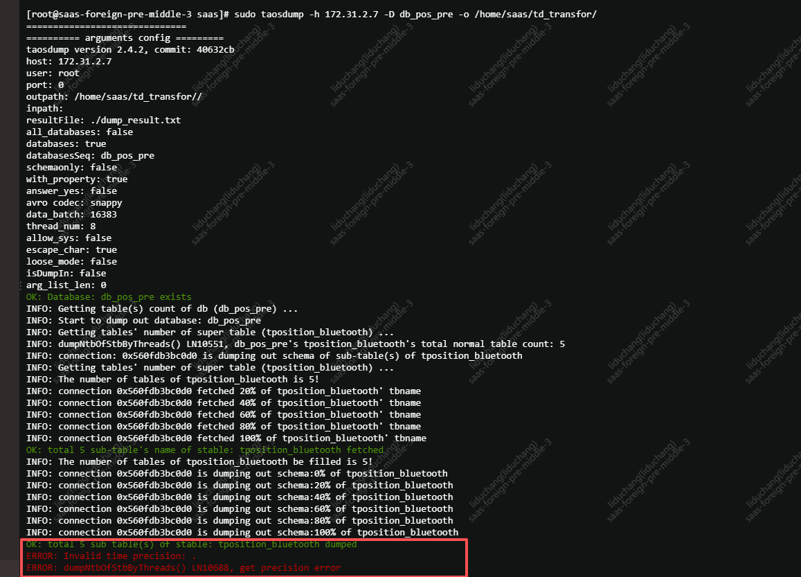 [root@saas-foreign-pre-middle-3 saas]# sudo taosdump -h 172.31.2.7 -D db_pos_pre -o /home/saas/td_transfor/