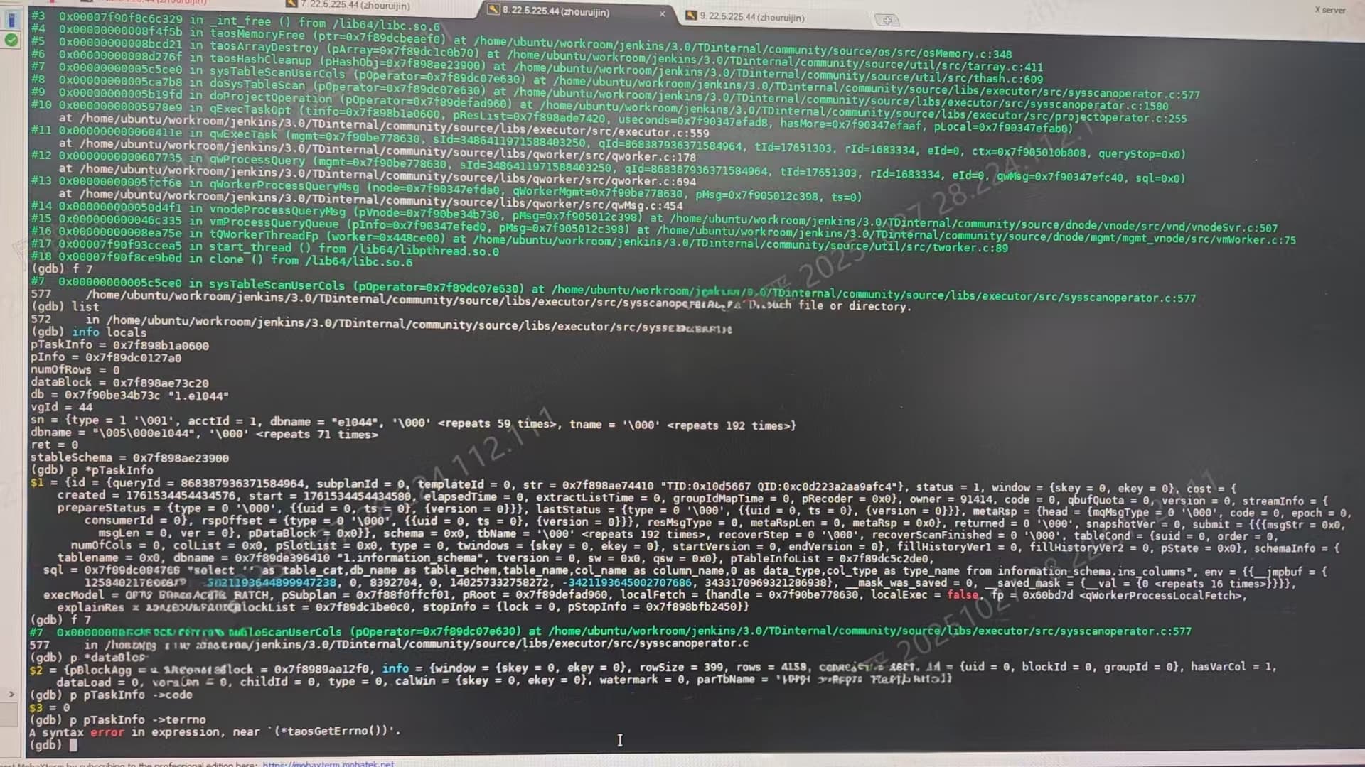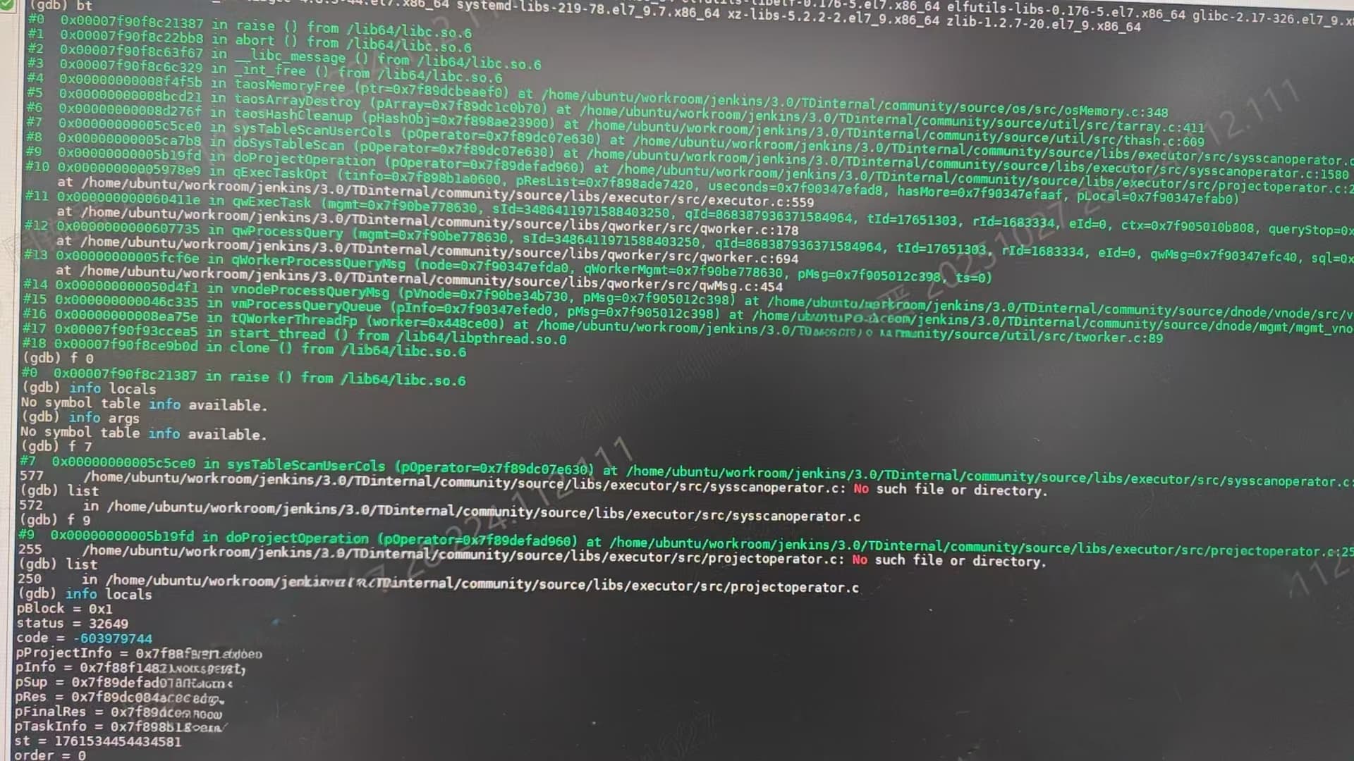 利用TD ENGINE进行查询的页面功能突然失灵,排查问题时发现是TD ENGINE出现崩溃并生成coredump文件,使用gdb命令分析调用栈。发现可能存在数据块缓冲区溢出问题
