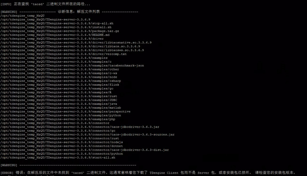 看这个包应该是没问题的,删除之前解压的,重新 tar zxf TDengine-server-3.3.6.9-Linux-arm64.tar.gz 解压看下呢