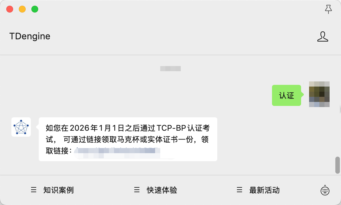 !疑问咨询:添加小T微信(tdengine),获取认证、申领专属指导。