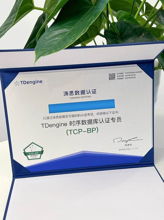 - 行业可信度建立:官方认证背书,展示您对 TDengine 超级表模型、数据分片策略、单机部署规范的掌握,赢得团队技术信任;