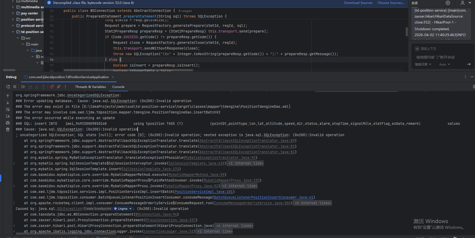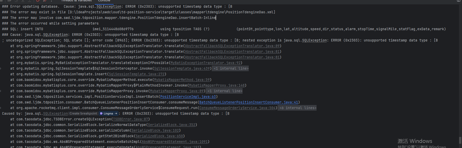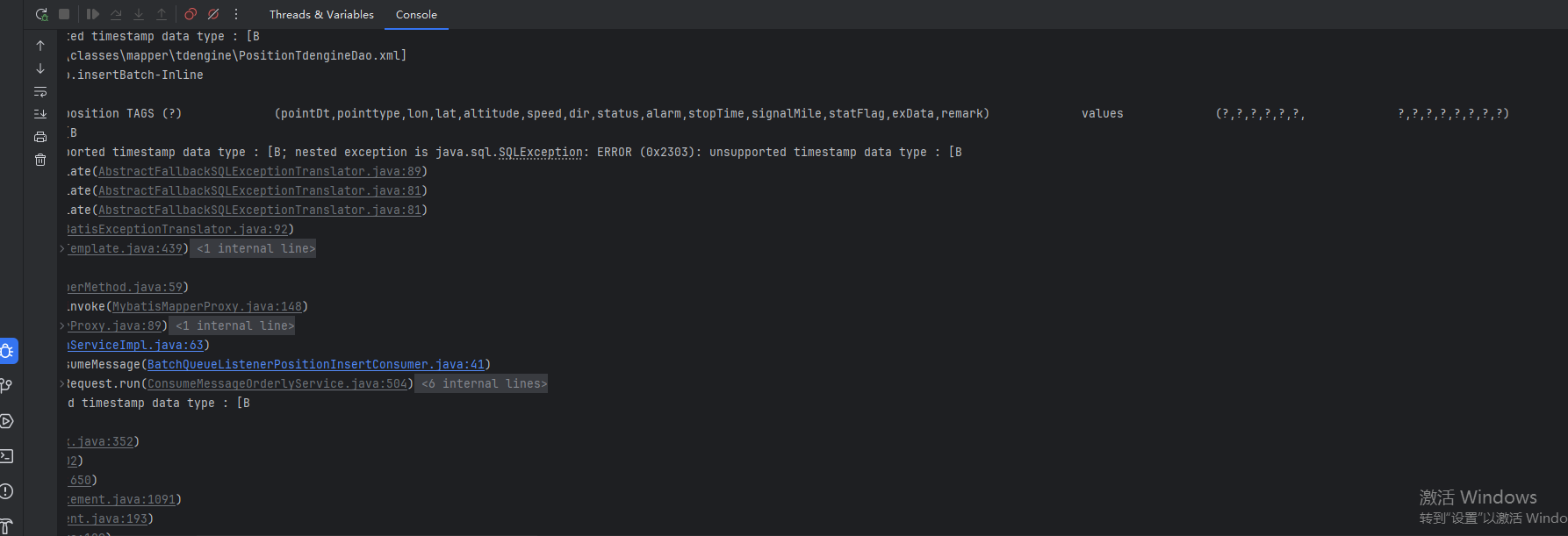 错误显示是写入的 时间戳 类型的数据不对。
