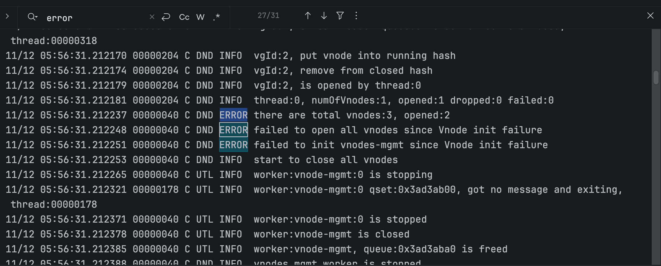 2025-11-12T05:56:33.613623643Z 11/12 05:56:33.613429 00000040 C DND INFO node:vnode, start to close