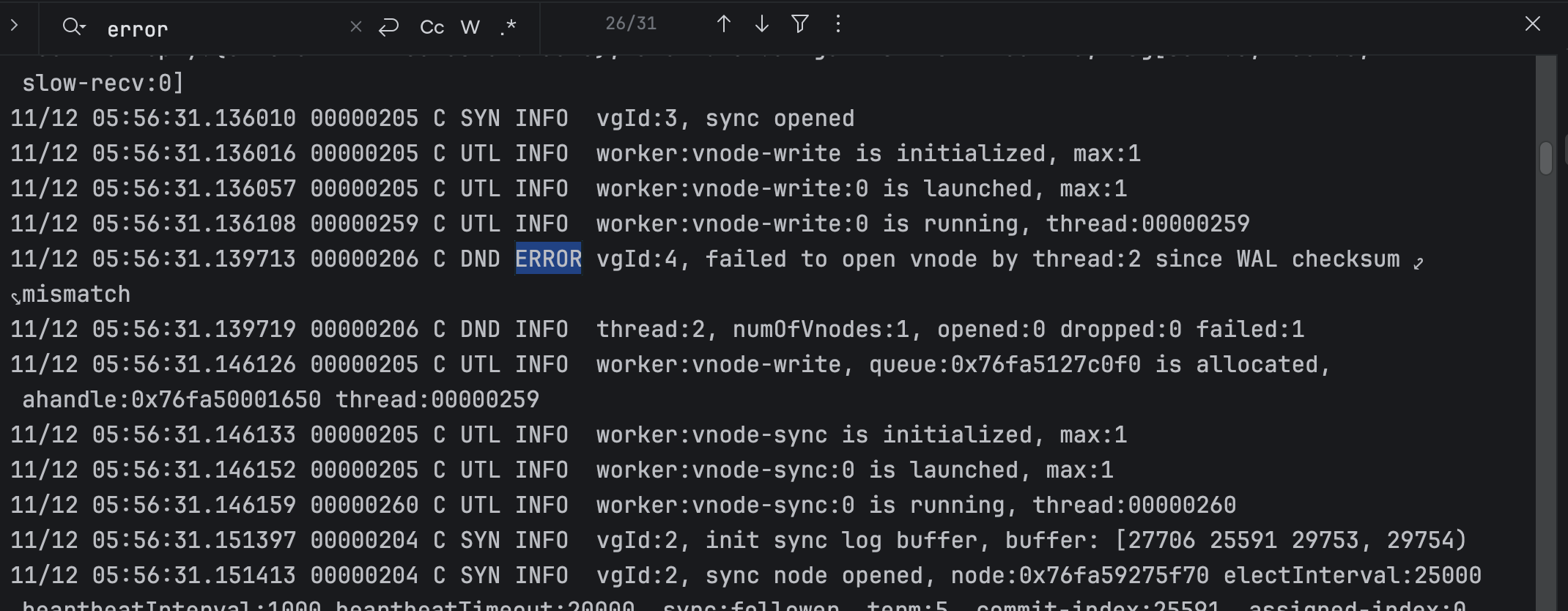 2025-11-12T05:56:33.597012004Z 11/12 05:56:33.596517 00000040 C MND INFO mnode-wal will cleanup