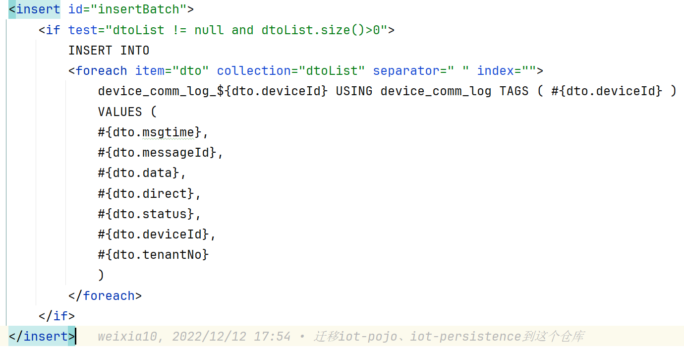 SQL: INSERT INTO device_comm_log_13989 USING device_comm_log TAGS ( ? ) VALUES ( ?, ?, ?, ?, ?, ?, ? )