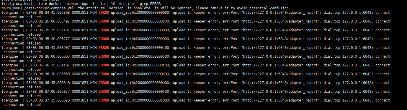 【遇到的问题:问题现象及影响】docker部署的Tdengine在服务器意外断电重启后一直报错,无法启动