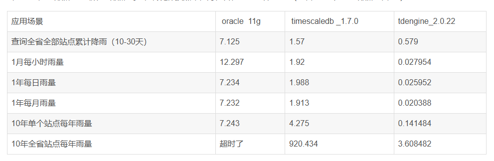 下面以近10年全省的雨量站小时雨量数据为例,从常用的应用场景为例对2个数据库进行比对分析。