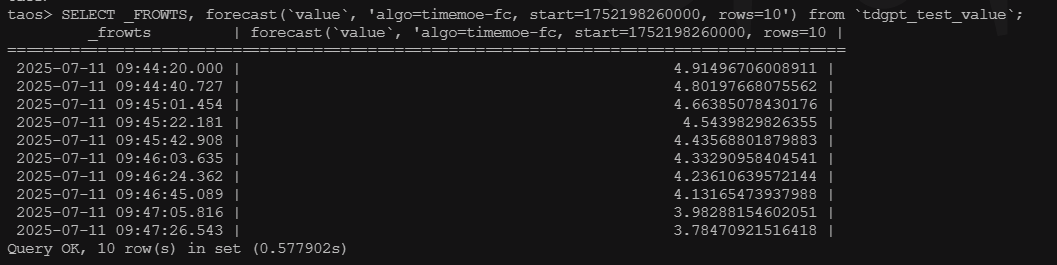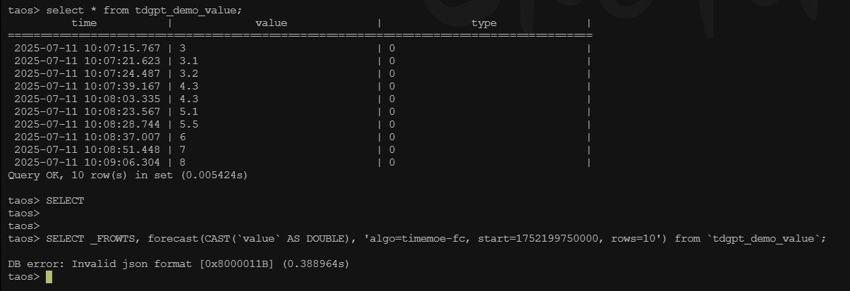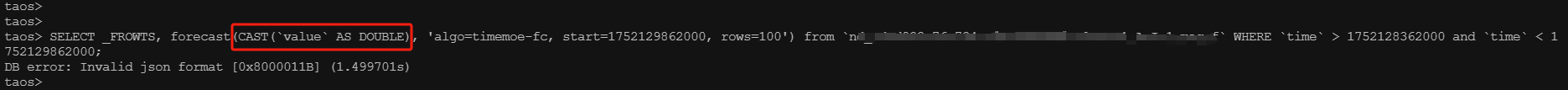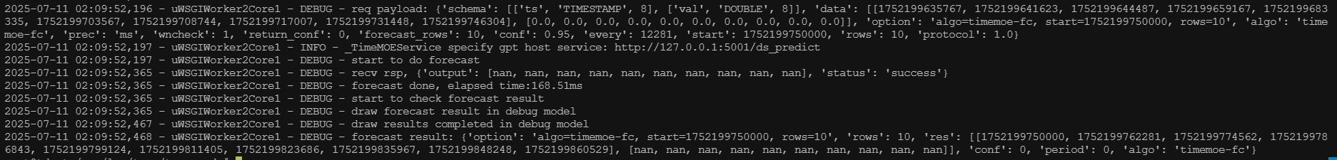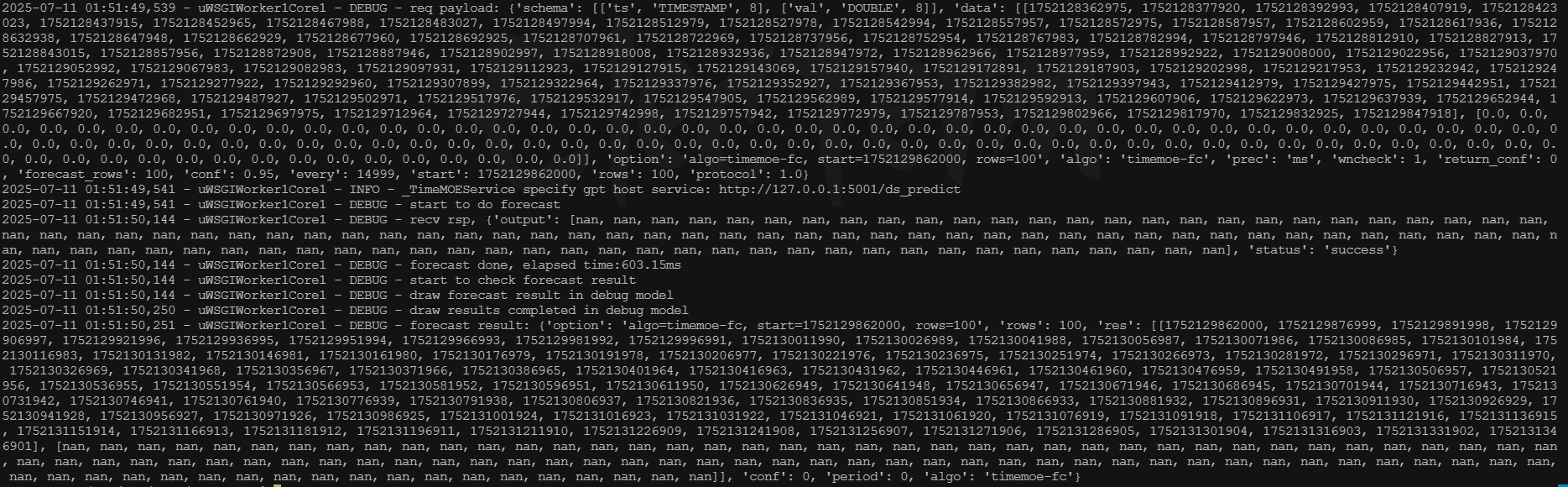 2、查看taosanode.app.log 日志,发现传递的value值于我实际的value值不匹配,并且预测值为nan