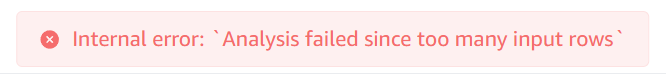 【问题复现路径/shan】导入了两个表,一个表 8w 多条数据,一个表 3w 多条数据,执行sql 报错