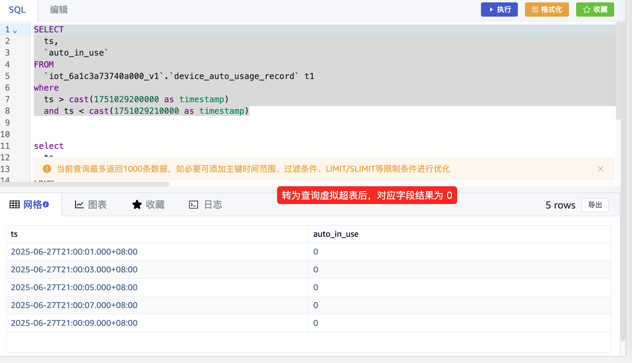 CREATE STABLE boiler_auto_standard (ts TIMESTAMP ENCODE ‘delta-i’ COMPRESS ‘lz4’ LEVEL ‘medium’, __placeholder__ TINYINT ENCODE ‘simple8b’ COMPRESS ‘lz4’ LEVEL ‘medium’, coalFeedertotalAIField FLOAT ENCODE ‘delta-d’ COMPRESS ‘lz4’ LEVEL ‘medium’, minBedTemperatureField FLOAT ENCODE ‘delta-d’ COMPRESS ‘lz4’ LEVEL ‘medium’, attemperatorWater2AO FLOAT ENCODE ‘delta-d’ COMPRESS ‘lz4’ LEVEL ‘medium’, secondaryAirQualityFlowField FLOAT ENCODE ‘delta-d’ COMPRESS ‘lz4’ LEVEL ‘medium’, boilerOnline FLOAT ENCODE ‘delta-d’ COMPRESS ‘lz4’ LEVEL ‘medium’, noxField FLOAT ENCODE ‘delta-d’ COMPRESS ‘lz4’ LEVEL ‘medium’, attemperatorWaterEnable FLOAT ENCODE ‘delta-d’ COMPRESS ‘lz4’ LEVEL ‘medium’, primaryAirVolSmooth FLOAT ENCODE ‘delta-d’ COMPRESS ‘lz4’ LEVEL ‘medium’, primaryAirVol FLOAT ENCODE ‘delta-d’ COMPRESS ‘lz4’ LEVEL ‘medium’, bedPressureDiffField FLOAT ENCODE ‘delta-d’ COMPRESS ‘lz4’ LEVEL ‘medium’, primaryAirFanAutoStatus FLOAT ENCODE ‘delta-d’ COMPRESS ‘lz4’ LEVEL ‘medium’, attemperatorWater2AutoStatus FLOAT ENCODE ‘delta-d’ COMPRESS ‘lz4’ LEVEL ‘medium’, steamFlowSmooth FLOAT ENCODE ‘delta-d’ COMPRESS ‘lz4’ LEVEL ‘medium’, coalFeederAutoStatus FLOAT ENCODE ‘delta-d’ COMPRESS ‘lz4’ LEVEL ‘medium’, attemperatorWater1AdjustStatus FLOAT ENCODE ‘delta-d’ COMPRESS ‘lz4’ LEVEL ‘medium’, secondaryAirVol FLOAT ENCODE ‘delta-d’ COMPRESS ‘lz4’ LEVEL ‘medium’, attemperatorWater2AdjustStatus FLOAT ENCODE ‘delta-d’ COMPRESS ‘lz4’ LEVEL ‘medium’, so2Field FLOAT ENCODE ‘delta-d’ COMPRESS ‘lz4’ LEVEL ‘medium’, attemperatorWater2AI FLOAT ENCODE ‘delta-d’ COMPRESS ‘lz4’ LEVEL ‘medium’, boilerAutoStatus FLOAT ENCODE ‘delta-d’ COMPRESS ‘lz4’ LEVEL ‘medium’, primaryAirqualityFlowField FLOAT ENCODE ‘delta-d’ COMPRESS ‘lz4’ LEVEL ‘medium’, rightBedTemperatureField FLOAT ENCODE ‘delta-d’ COMPRESS ‘lz4’ LEVEL ‘medium’, attemperatorWater2Enable FLOAT ENCODE ‘delta-d’ COMPRESS ‘lz4’ LEVEL ‘medium’, attemperatorWaterAutoStatus FLOAT ENCODE ‘delta-d’ COMPRESS ‘lz4’ LEVEL ‘medium’, totalCoalField FLOAT ENCODE ‘delta-d’ COMPRESS ‘lz4’ LEVEL ‘medium’, secondaryAirFanAutoStatus FLOAT ENCODE ‘delta-d’ COMPRESS ‘lz4’ LEVEL ‘medium’, slagCoolerEnable FLOAT ENCODE ‘delta-d’ COMPRESS ‘lz4’ LEVEL ‘medium’, steamPressureField FLOAT ENCODE ‘delta-d’ COMPRESS ‘lz4’ LEVEL ‘medium’, boilerEnable FLOAT ENCODE ‘delta-d’ COMPRESS ‘lz4’ LEVEL ‘medium’, coalQualityField3 FLOAT ENCODE ‘delta-d’ COMPRESS ‘lz4’ LEVEL ‘medium’, secondaryAirOutPress FLOAT ENCODE ‘delta-d’ COMPRESS ‘lz4’ LEVEL ‘medium’, coalQualityField2 FLOAT ENCODE ‘delta-d’ COMPRESS ‘lz4’ LEVEL ‘medium’, slagCoolerEnable1 FLOAT ENCODE ‘delta-d’ COMPRESS ‘lz4’ LEVEL ‘medium’, slagCoolerEnable2 FLOAT ENCODE ‘delta-d’ COMPRESS ‘lz4’ LEVEL ‘medium’, coalFeederAOField1 FLOAT ENCODE ‘delta-d’ COMPRESS ‘lz4’ LEVEL ‘medium’, slagCoolerEnable3 FLOAT ENCODE ‘delta-d’ COMPRESS ‘lz4’ LEVEL ‘medium’, coalFeederAOField2 FLOAT ENCODE ‘delta-d’ COMPRESS ‘lz4’ LEVEL ‘medium’, steamTemperatureSmooth FLOAT ENCODE ‘delta-d’ COMPRESS ‘lz4’ LEVEL ‘medium’, coalFeederAOField3 FLOAT ENCODE ‘delta-d’ COMPRESS ‘lz4’ LEVEL ‘medium’, oxygenExhaustLeftSmooth FLOAT ENCODE ‘delta-d’ COMPRESS ‘lz4’ LEVEL ‘medium’, oxygenExhaust FLOAT ENCODE ‘delta-d’ COMPRESS ‘lz4’ LEVEL ‘medium’, oxygenExhaustLeft FLOAT ENCODE ‘delta-d’ COMPRESS ‘lz4’ LEVEL ‘medium’, funnelTemperatureField FLOAT ENCODE ‘delta-d’ COMPRESS ‘lz4’ LEVEL ‘medium’, secondaryAirCurrent FLOAT ENCODE ‘delta-d’ COMPRESS ‘lz4’ LEVEL ‘medium’, secondaryAirAI FLOAT ENCODE ‘delta-d’ COMPRESS ‘lz4’ LEVEL ‘medium’, draftFanAO FLOAT ENCODE ‘delta-d’ COMPRESS ‘lz4’ LEVEL ‘medium’, slagCoolerOutWater2 FLOAT ENCODE ‘delta-d’ COMPRESS ‘lz4’ LEVEL ‘medium’, airChamber_PresA FLOAT ENCODE ‘delta-d’ COMPRESS ‘lz4’ LEVEL ‘medium’, slagCoolerOutWater1 FLOAT ENCODE ‘delta-d’ COMPRESS ‘lz4’ LEVEL ‘medium’, attemperatorWater1InTemp FLOAT ENCODE ‘delta-d’ COMPRESS ‘lz4’ LEVEL ‘medium’, airChamber_PresB FLOAT ENCODE ‘delta-d’ COMPRESS ‘lz4’ LEVEL ‘medium’, boilerAdjustStatus FLOAT ENCODE ‘delta-d’ COMPRESS ‘lz4’ LEVEL ‘medium’, steamFlowField FLOAT ENCODE ‘delta-d’ COMPRESS ‘lz4’ LEVEL ‘medium’, negPressureField FLOAT ENCODE ‘delta-d’ COMPRESS ‘lz4’ LEVEL ‘medium’, coalFeederAIField3 FLOAT ENCODE ‘delta-d’ COMPRESS ‘lz4’ LEVEL ‘medium’, coalFeederAIField2 FLOAT ENCODE ‘delta-d’ COMPRESS ‘lz4’ LEVEL ‘medium’, coalFeederAIField1 FLOAT ENCODE ‘delta-d’ COMPRESS ‘lz4’ LEVEL ‘medium’, test_flag FLOAT ENCODE ‘delta-d’ COMPRESS ‘lz4’ LEVEL ‘medium’, slagCoolerAutoStatus2 FLOAT ENCODE ‘delta-d’ COMPRESS ‘lz4’ LEVEL ‘medium’, slagCoolerAutoStatus FLOAT ENCODE ‘delta-d’ COMPRESS ‘lz4’ LEVEL ‘medium’, coalPerAOField1 FLOAT ENCODE ‘delta-d’ COMPRESS ‘lz4’ LEVEL ‘medium’, slagCoolerAutoStatus3 FLOAT ENCODE ‘delta-d’ COMPRESS ‘lz4’ LEVEL ‘medium’, coalPerAOField3 FLOAT ENCODE ‘delta-d’ COMPRESS ‘lz4’ LEVEL ‘medium’, slagCoolerAI1 FLOAT ENCODE ‘delta-d’ COMPRESS ‘lz4’ LEVEL ‘medium’, slagCoolerAutoStatus1 FLOAT ENCODE ‘delta-d’ COMPRESS ‘lz4’ LEVEL ‘medium’, coalPerAOField2 FLOAT ENCODE ‘delta-d’ COMPRESS ‘lz4’ LEVEL ‘medium’, slagCoolerAI2 FLOAT ENCODE ‘delta-d’ COMPRESS ‘lz4’ LEVEL ‘medium’, coalFeederAdjustStatus3 FLOAT ENCODE ‘delta-d’ COMPRESS ‘lz4’ LEVEL ‘me