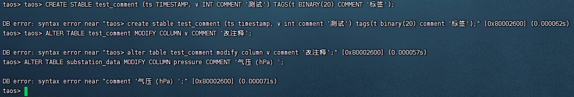 【遇到的问题:问题现象及影响】 建表不能带comment加注释吗,一条条单独加也不行?