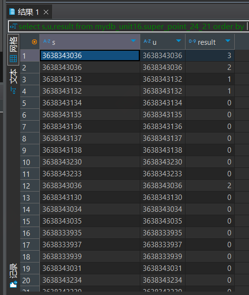 s和u都是我表的tag标签,使用工具查询出来的标签列展示出来的是个很奇怪的数字,但是使用客户端查询出来的展示 是对的 这个工具展示出来的是个什么东西 如何展示和客户端一样的效果呢