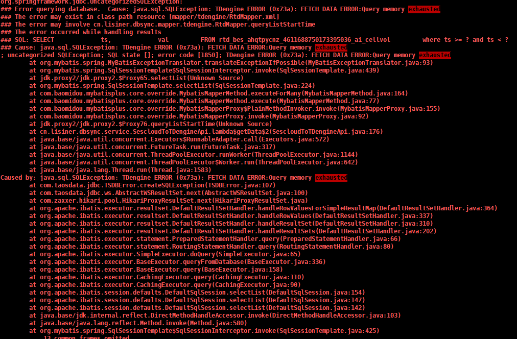 【问题复现路径/shan】我在将A集群数据同步到B集群的时候,我使用java 16个线程每个线程每次读取一张表,三个月的数据读取一次直到读取这个表的所有数据,执行插入到B集群,但是A集群总是报内存不足,但是我看系统的内存还有10G左有