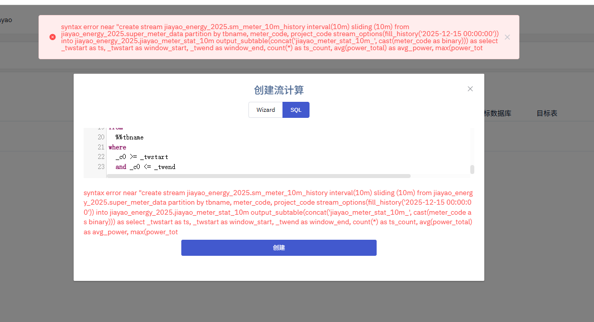 create stream jiayao_energy_2025.sm_meter_10m_history interval(10m) sliding (10m)