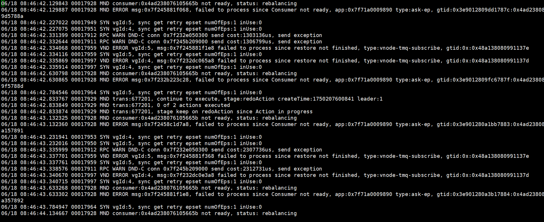 DB error: Sync leader is restoring (10.107400s)