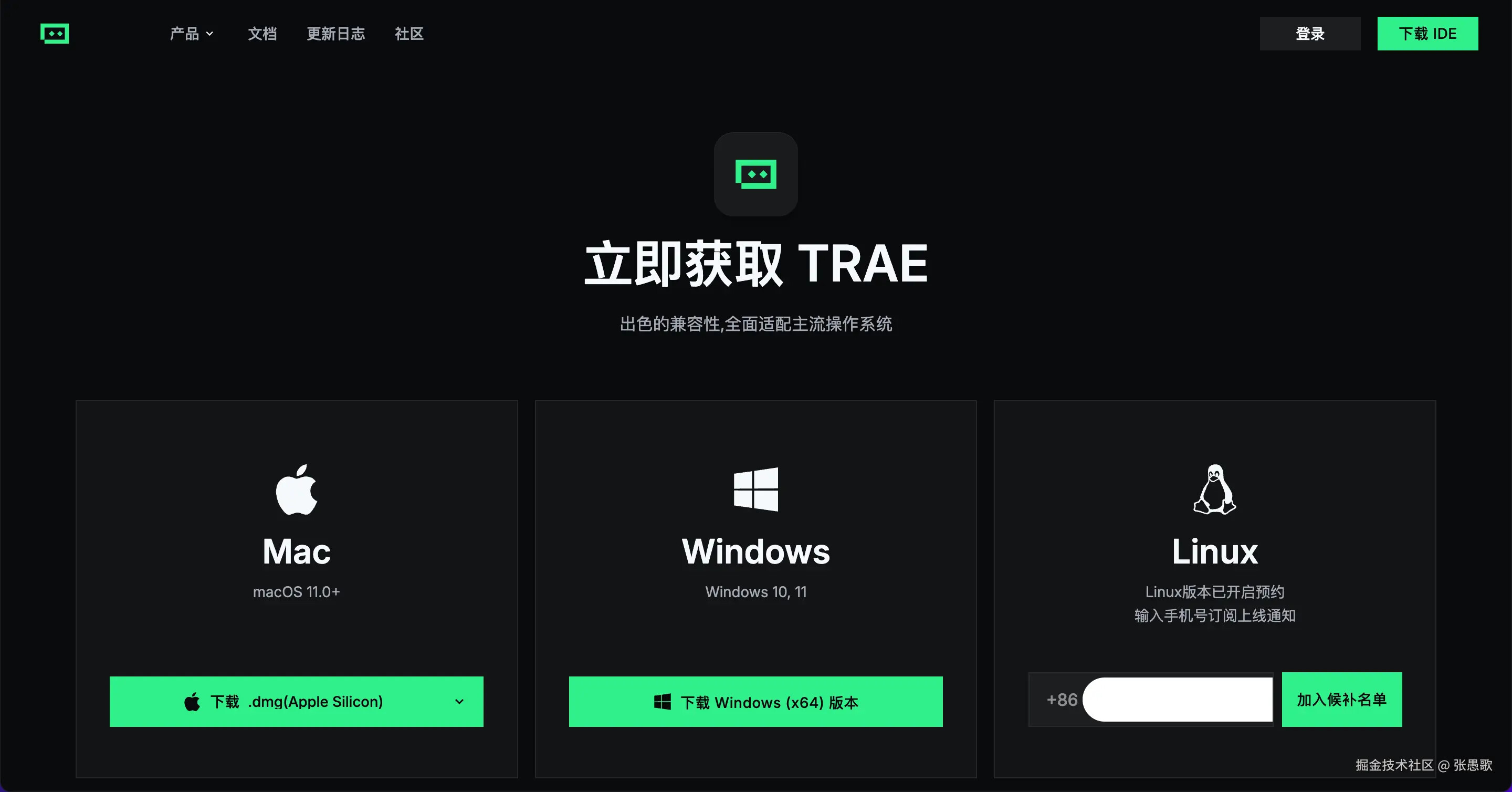 本次演示的前提是已经安装字节跳动的 AI 原生编程工具 Trae 以及 Docker 并完成注册和相关配置,具体可以访问 Trae 的官网下载对应操作系统和芯片的版本,也可以通过 Trae 安装 Docker,安装成功后启动 Docker 即可,不需要做其他操作。