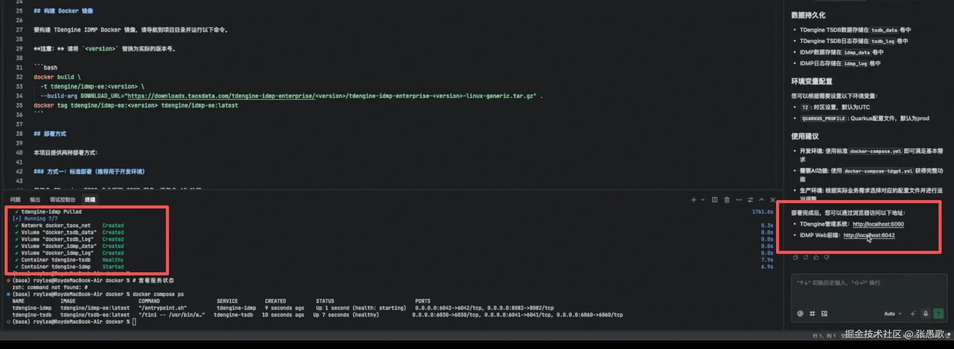 我本身混迹在 TDengine 开源社区,经常会下载新版的 TDengine 数据库来体验新的功能,上个月 TDengine 官方发布了 TDengine IDMP,可以基于采集的数据自动生成面板、报表和实时的数据分析,往常我都是使用 macOS 的安装包进行体验,但这个产品在官方文档中提示需要依赖 TDengine TSDB-Enterprise 3.3.7.0+,想要在不升级本地版本的同时体验新的产品,只能通过 Docker 来尝试,但我本身不熟悉 Docker ,所以我想到用 TRAE 来帮助我通过 Docker 部署 TDengine IDMP。